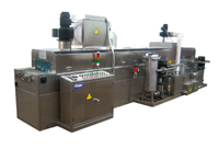 設置有兩道清洗工位,一道熱風烘干工位,加熱后的清洗